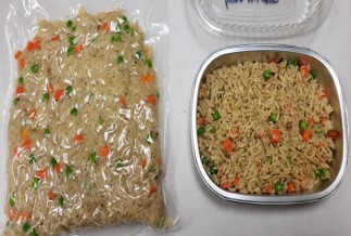 Vierta el arroz frito (o LoMein) por igual en 4 recipientes de comida preparada a 0.50 lb (8 oz)
