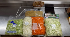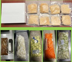 Póngase guantes desechables y use un cortador de seguridad para abrir cada bolsa / paquete individual. Si es necesario, retire los productos de las bolsas y coloque los artículos en recipientes limpios y desinfectados mientras prepara las comidas.