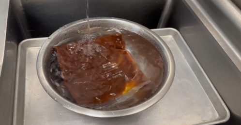 Descongele la salsa congelada sumergiéndola bajo agua corriente fría durante 5-10 minutos hasta que estén completamente descongeladas.