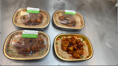 Cierre su bandeja de comida con la tapa de plástico y coloque su pegatina de comida preparada justo en la parte superior central.