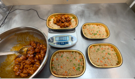 La regla general: Una bolsa de pollo y Una bolsa de salsa le dará Cuatro bandejas de comida diferentes.